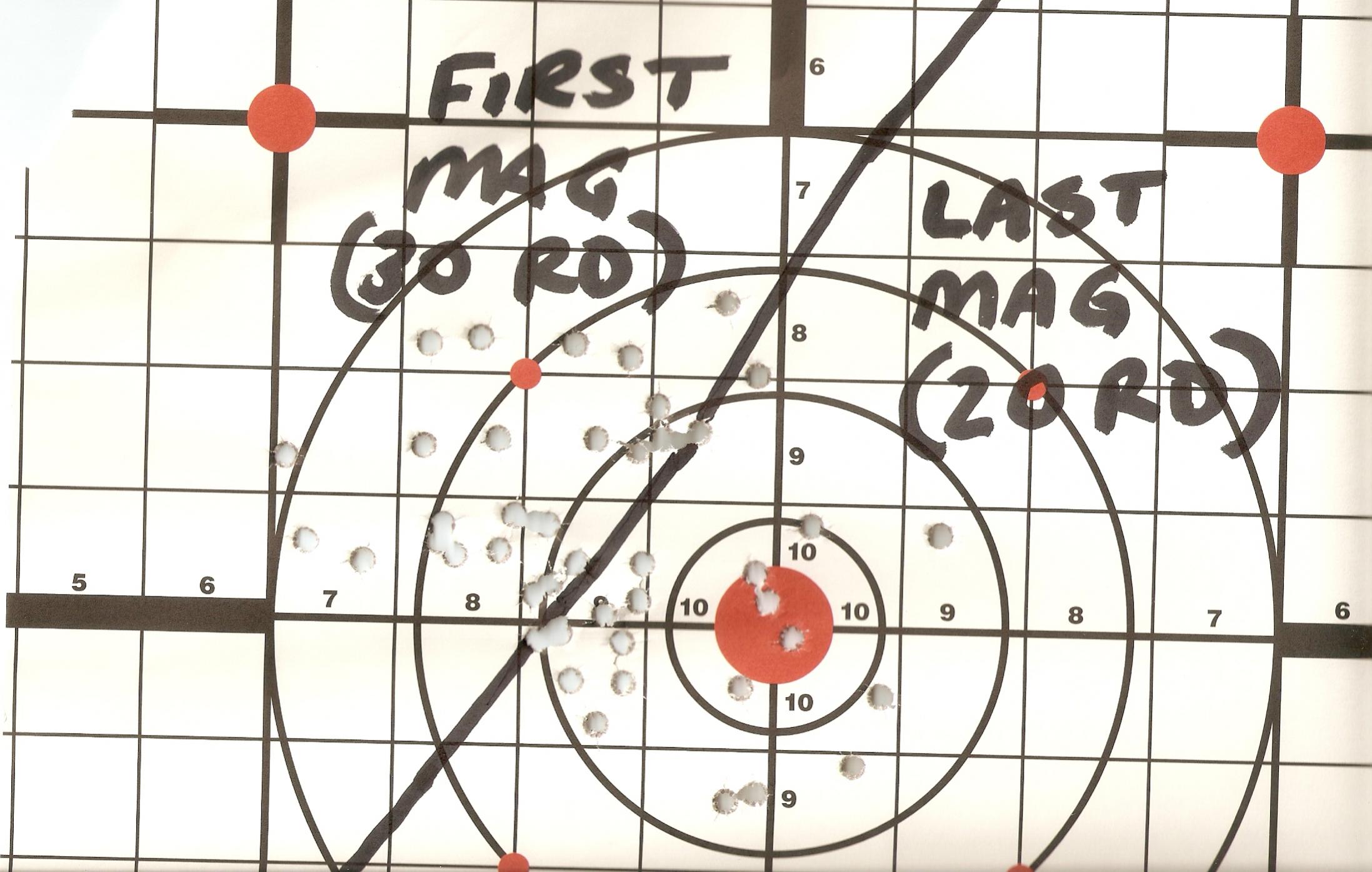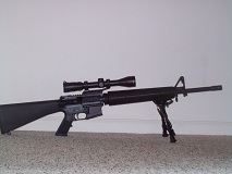 I took off the spacer and once more abused my credit card and got a decent mount. It is a Nikon .223 mount, and put my Elite 3200 on it. I was slightly disappointed but realized it is an AR not a match version, and a plain trigger. The target looks like Swiss-Cheese but it is an AR with bulk ammo.Attachment 7904 |