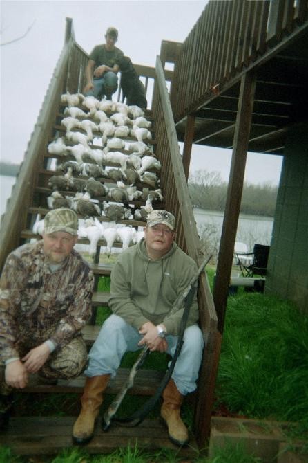 Tim's not trying to Spam TreeDoc. I cleared my original post with Petey but couldn't get the pics to post. I emailed for help but never received a reply (lost email??) I hunted with Tim and am always glad to tell everyone when an Outfit offers a good hunt for the $$. Tim's located in one of the prime areas for hunting the Mississippi flyway. Mack's Prairie Wings waterfowl Store, Bayou Meto, Arkansas River, flooded timber and endless rice fields full of Ducks and Geese are good reasons to let waterfowl lovers know about SW Guide service. I'm on the left at the bottom of the stairs. Tim Reaves (Owner) is on the right. Derrick is at the top with Tim's Lab "Ellie." Thanks for posting the pics. grayghost