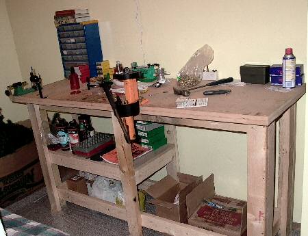 bench ended up being 4 foot by three. had just enough 2x4s to california corner the the legs, and brace it good. aswell as use the 2x4 bench surface. i routerd all the edges and did some scroll work to. the onlything im issing from the free press is the primer handle. grrrrr went to walmart and they had one but low and behold mines one of two the handle doesnt work with. ive got the rcII press. i did pick up some more imr 4350 and 165gr nolser balistic tips for the 3006. i wanna see how they fly. and ive heard 4350 is the sh!t in the 3006. then next to me ive got outers foameing bore cleaner doing its magic in my 2506 and 3006 bore. then next in line the 270 and 22/250, i bet the little 250 realy shotguns em with no copper in the bore almost forgot the 220. it probly doesnt need but what the heck. foam still isnt turning blue, i guess its suposed to when the copper is all dissovled. what all have you been loading. hows the 204 workin out.? Evan |