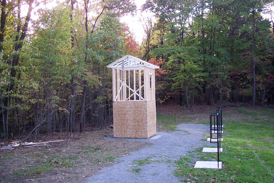 Here is one of the control tower and overhead outgoing target house. Still under construction!
