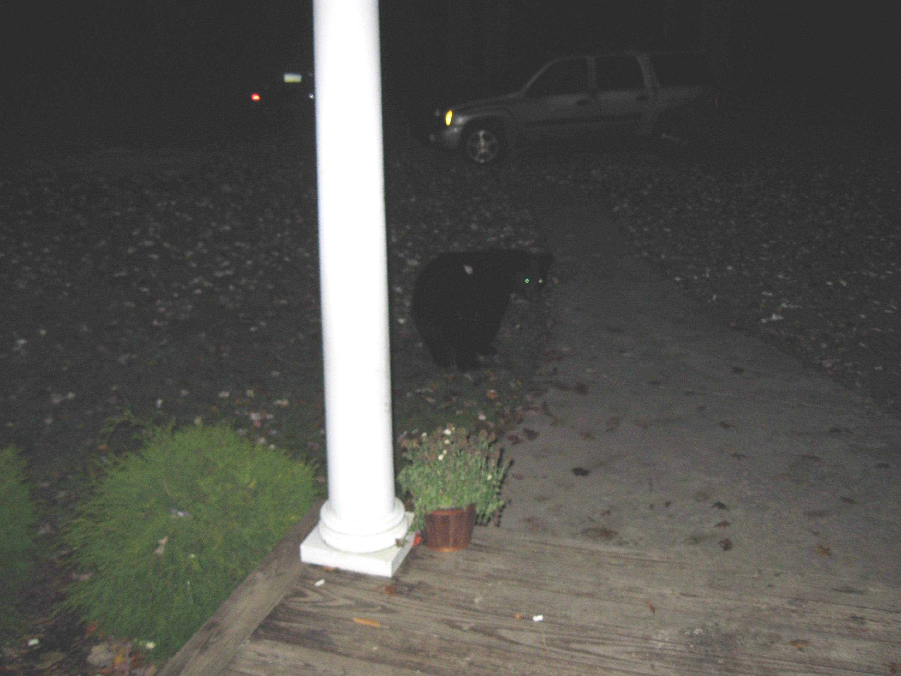 Just to keep everyone up to speed on the Bear situation...she's still around. LOL! Sunday night she decided to camp out on the porch as we had the trash inside and there was nothing for her to eat. She made herself comfortable and just sat on the porch for about 15 minutes like she was surveying her domain.