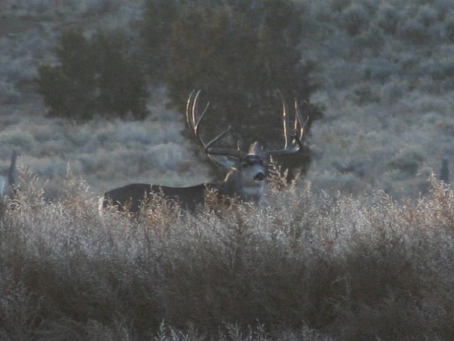 No question this is trophy mulie! Do you take the shot? Appears to be inside 100 yds. and assuming you have your favorite rifle,do you take the shot and where do you place the crosshairs?