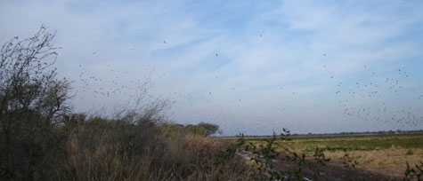 When a flock of birds flew in, if you were shooting an O/U, you just got two shots and before you could reload they were gone. The area where we were is about 3,000 ft altitude between the Andes Mts and the Sierra Cordoba (7,000 ft), a real big flat valley. They figured out how to irrigate the land 6 years ago and now with grain crops, the bird population has exploded. The first photo is of speckled wing piegons in a normal small group. Ed