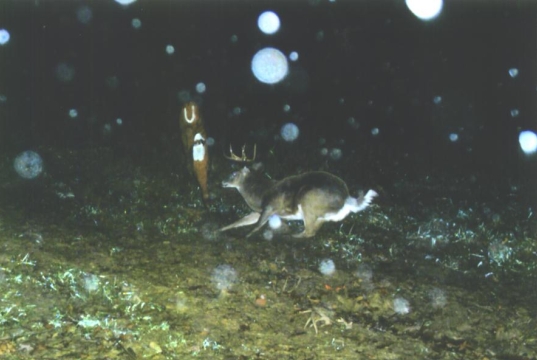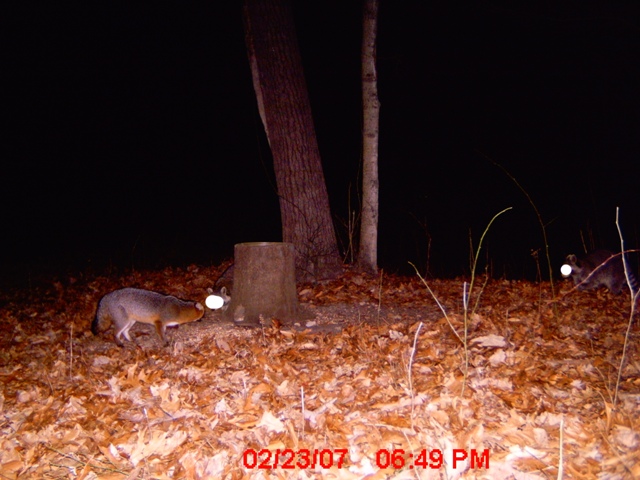These pictures were taken with the 2006 model of Cuddeback cameras. The black and white picture was taken at night with a Cuddeback NoFlash. It's amazing what friends might visit your feeder!