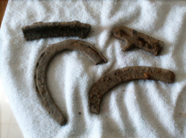 This one I think is a homemade horse bit. That was WAY down in the earth..right at 1 1/2 ft. It won't uncommon fer folks durin and right after the Civil War to forge their own materials. Esp. since Tredegar Iron Works was takin every metal the state could muster fer makin cannon and the like. Also, a few more bullets.