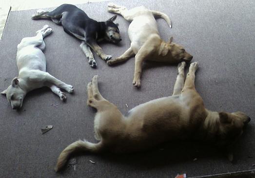 In the picture front left to right is Berry, TJ, and Abby. TJ you may remember we lost on spring break. The dog on the bottom is their momma. This is the front porch rug at my grandmothers where Abby spent about half her time. The rest of her time she was on my front porch.