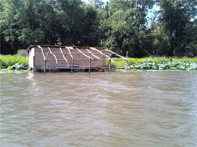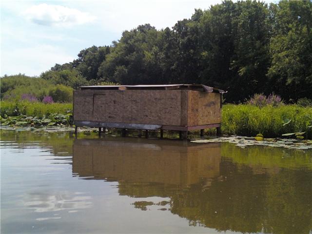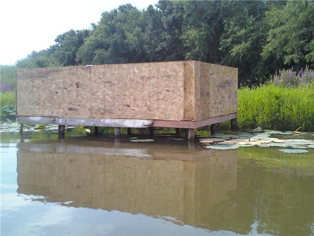 yepp.. theres going to be a boat blind on the front of it yet. and the actuall blind will be divided in half. the front half will be were the shooting holes are and the back half will be cooking. and im going to try to stay out there a few nights, so im going to try to have some kind of bed. but i dont know? we will see. and theres going to be a bathroom on the back half on the down stream side of the blind(which is the right side looking at it).