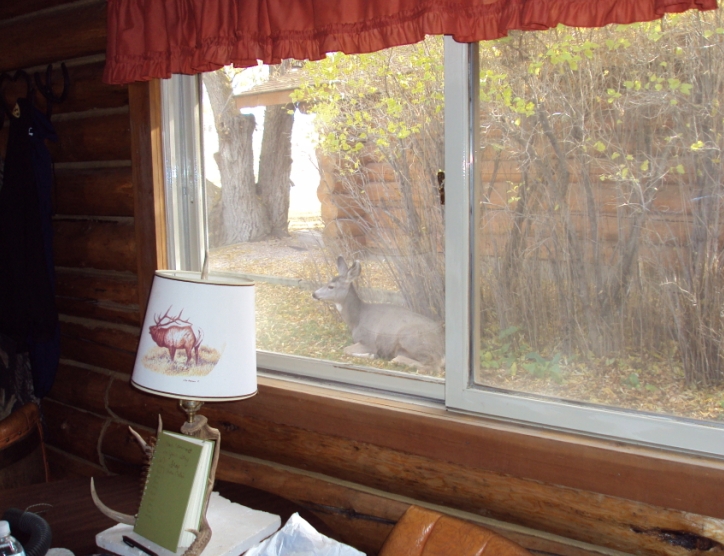 In the evenings, I would see herds of 100 deer at a time. No guff either, as I watched from horseback one night a herd of 99 deer, 98 of which were does and small bucks and the 99th being a dandy buck that the lady hunter shot. I was amazed at the amount of animals that would come off this property in the evenings. It only made sense as the farm fields below were stacked against the Yellowstone River and this mountain was the only cover around. The accommodations were awesome, true log cabins right there in Bill’s back yard off Jardine Road, with a view of Mammoth Hot Springs to the South and Sheep Mountain to the North. Peggy, Bill’s wife always had a great supper in the evenings, large breakfast before the morning hunt and had packed bag lunches every day. We shared plenty of stories, that’s for sure.