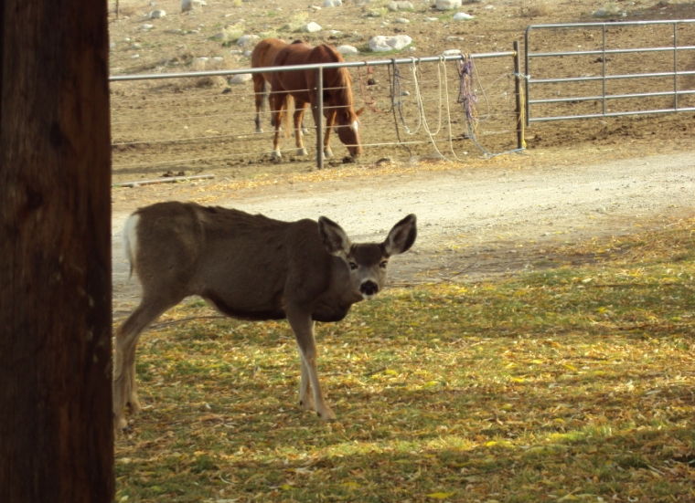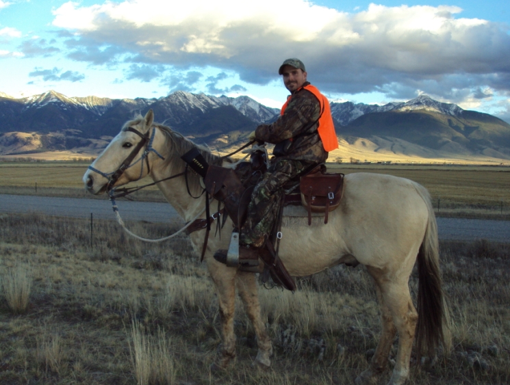 Now I’m in a “honey hole”…I just know it. About an hour into my rest and watching along come two guys on horseback from higher up, they are coming down! Oh man…so I’m thinking I’m the only dude here and here are these guys even further in than me. Another 2 hr hike out, got me back to the truck at dark. After discussing the matter, I decided I need a horse if I’m going to cover some land, so Bill was gracious enough to lend me one the next day and off I went after the morning hunt. That day I spent 10 hrs on horseback, found a nice advantage point to glass about 6 or so parks. Here I have a gorgeous view of Paradise Valley. I ended up riding back to our mountain and that was when I encountered several large herds of deer filtering off our mountain to the farm fields below. It was like the mountain was moving there were so many critters coming off that hill. By now I’m enjoying everything about this hunt. I’m kind of spoiled because I get to do the guided thing in the mornings and evenings and I get to hunt public by myself during the day.