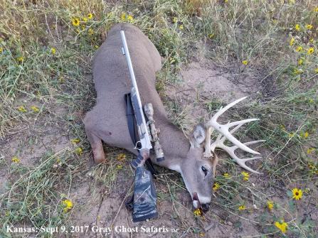 I recently booked a hunt in the Kansas sand hills for their early Muzzle Loading season which began on September 11, 2017. Trail camera's were yielding some excellent bucks with a few looking like they'd be Booners by the time season opened. One week before the opener, KS offers a Youth/Disabled/Handicapped season and our guide took advantage of this opportunity and bagged a 171 inch 10 pointer.