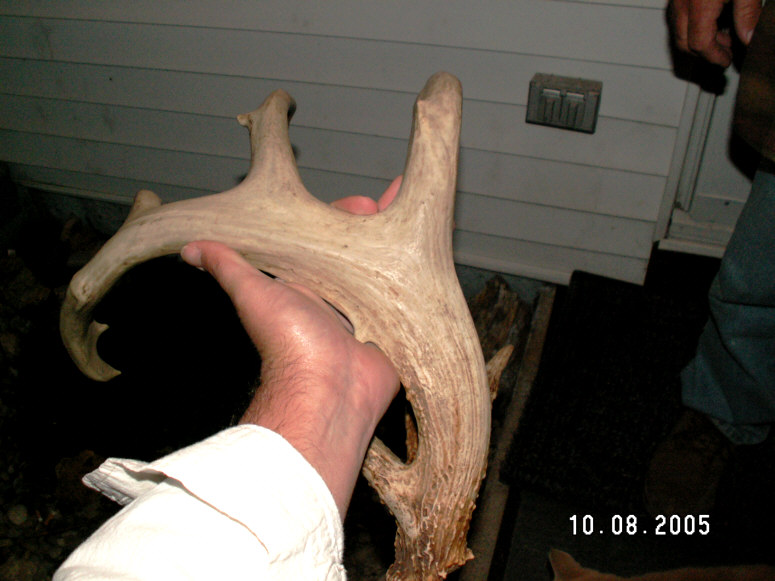 I went to my sisters today & we stopped by a friend of her's to look at some indian artifacts she had found, then, she says "did you see the shed she found this spring?" I turned around & looked down & about fell over!! She said that she went back & looked for the other side w/no luck, then, she said "he is still out there & they have seen him this year & that if we wanted to hunt there we were more than welcome to. I think that is about the time I wet myself!?