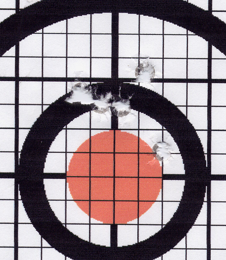 Those old triple duces are still hard to beat. My wife has a cousin that bought one in 1960. Since then he has carried it in his pick-up truck. Acouple of years ago I ask his how many groundhogs he had and he said his gun did shot accurate any more. It was an old 722 Rem. and looked warn out for sure, but I brought it home to clean it up and check it out. After 50 patches of Sweets 7.62 the last patch was as blue as the first. Being tired of cleaning I took it out and fired a group. I fired it at 80 yrds., cause that`s what was handy, and the group looked alot like yours without eather flier. So I put a coat of finish on his gun and took it back to his. I figure that I`ll clean the rest of the copper out in another 40 years. Got to love those .222`s.