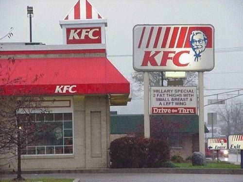 This is an actual sign on a KFC in New York. Even if you are a Democrat - ya gotta appreciate it.