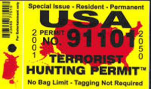 Yesterday I saw in a pickup truck's window a 'terrorist hunting permit.'