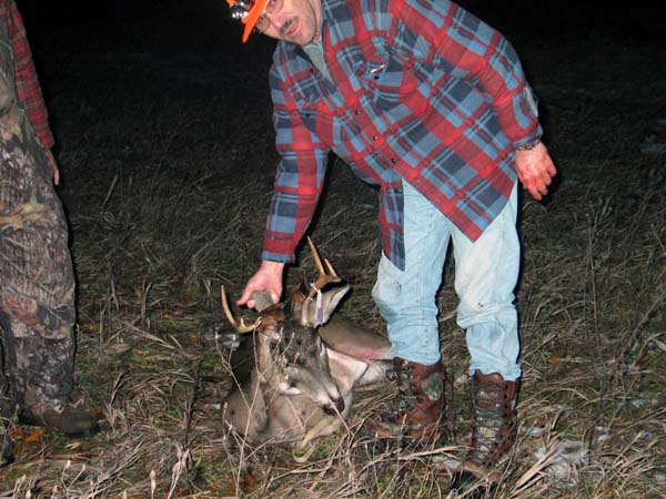 )On Weds, opening day, my father took a decent 2 1/2 yr old 6 pt. I had a small buck and doe walk by me opening morning, but the tag I have left says it has to have at least 4 points on one antler... so he walked. On thursday my buddy took a nice little 5 pointer. We only saw a couple of does after that but it was still a great time. Both of our sons came along to hunt with a camera. Some how these two never saw a deer (they might have had just a little too much fun together in the pop-up blind) Looks like my son and I will get a chance to hunt some private land this weekend, which under our new laws will allow him to take a deer with a gun, so I have my fingers crossed. I will get a few pics up here in a minute. How is every one else doing so far? |