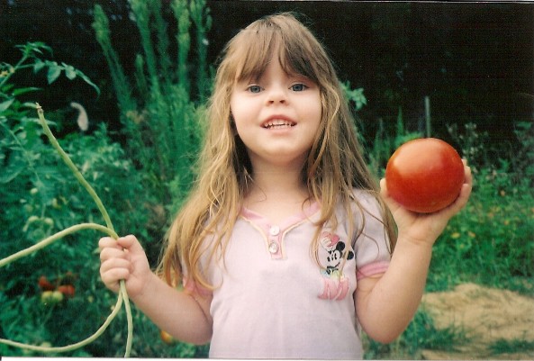 Anyways...here she is in the garden, helpin pick some maters and string beans...she was so proud of herself. She always HAS to help...God forbid you do somethin without her.