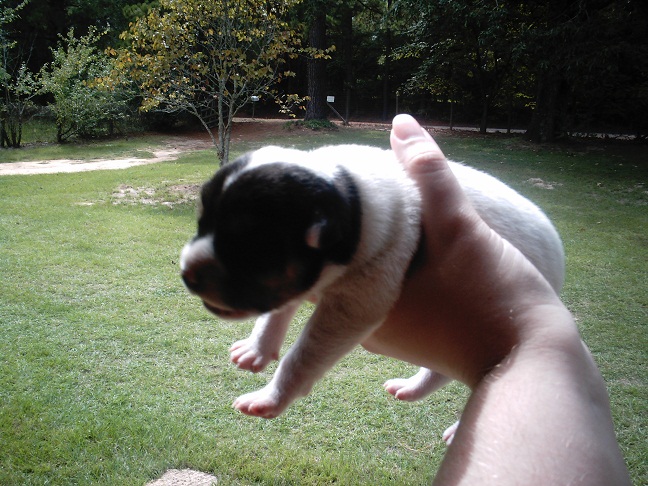 Well Berry (or Bearie as my wife spells it) had her first and ONLY pup five days ago. He has about tripled in size since then mostly due to the fact that he is feeding off of ALL the full nipples on his mom. His is Kinda like a overstuffed sausage, and when you pick the little pig up he immediately starts snuffling around like its feeding time again.