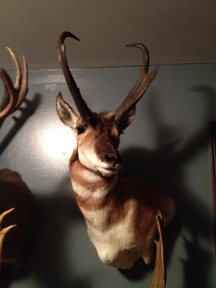 Well, after two years of impatiently waiting the taxidermist I chose for this project finished up my record book antelope. The photo doesn't do it justice. I chose a "wall pedestal" form so more of the shoulder shows. I need to do some lighting adjustment in my game room because the remaining spot I had for him is quite....well, it's dark LOL