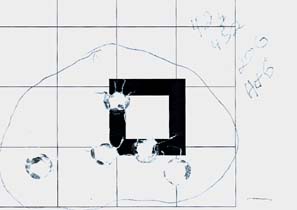 This is the result after shooting 9 rounds of the misc stuff to get framilar with the trigger. I pulled the one round straight out to the left, typical DA like a Glock, otherwise the group is A zone at 20 and with a 6:00 on the square, it is also dead on. That is 4.2 gr of WW 452 AA under a 200gr H&G hard cast. The bullets are set up with a profile crimp die (combo taper and roll). Now both clips are loaded with this load. Ialso never got hit with an empty, all just to the right, scattered of course.