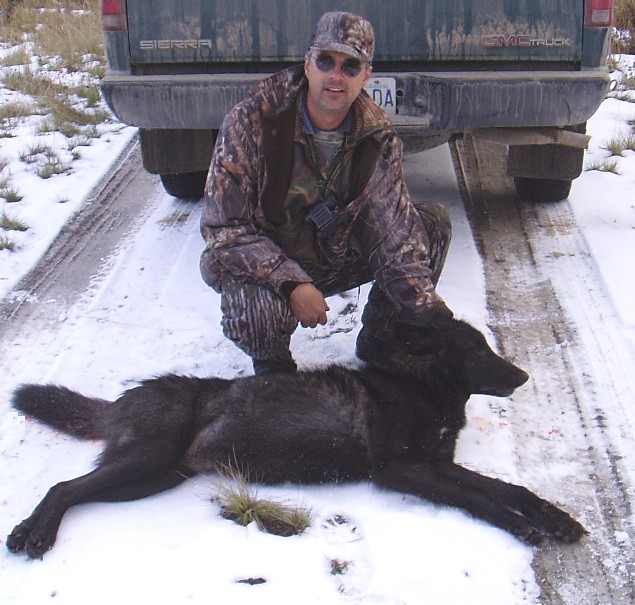 Neat looking wolf! Are the black color phases hard to come by up there, or is it a regular occurence? Congrats on a great hunt!