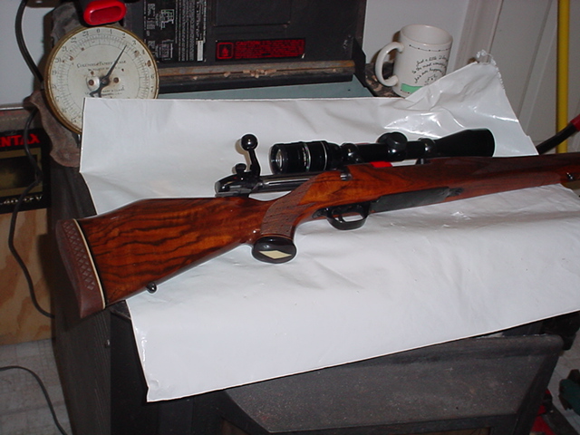 Picture isn't very good but the rifle is really pretty. Don't like the scope too much but the mounts are Beuhler and built like a bank vault. Bore is spotless and rifle has been shot less that 50 times. Few scratches etc but probably look worse than this after I get done hunting with the darn thing.