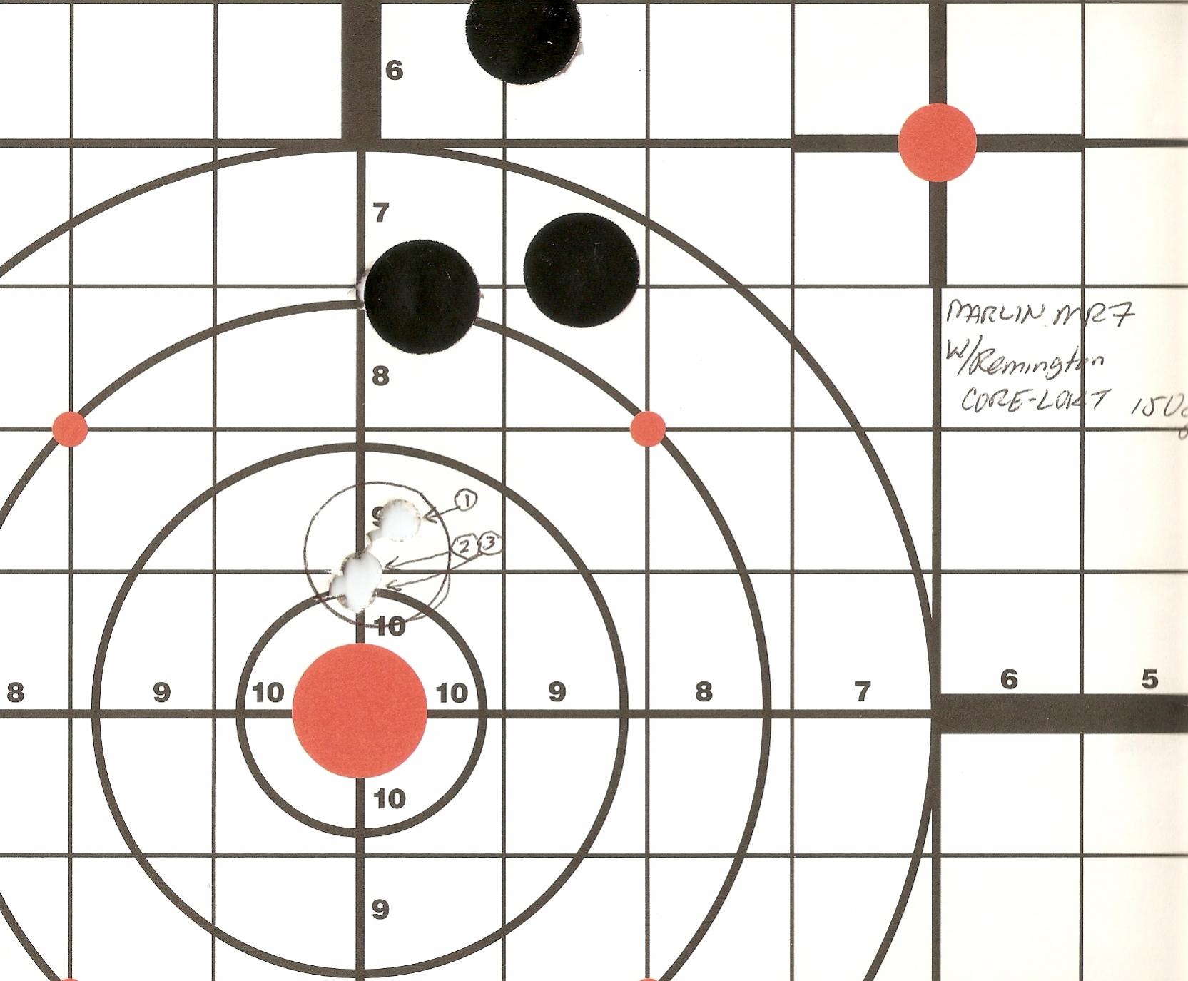 The Mauser didn't want to cooperate, the CVA will need customer service. But look and see what the MR-7, one of my oldest rifles did, with a used older scope. I think I will wait to tweak the Mauser after deer season.