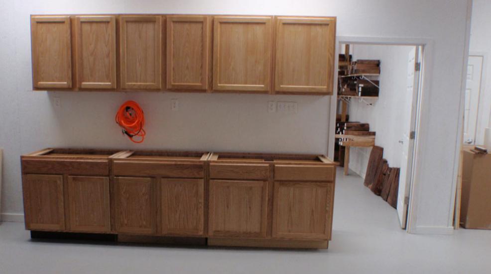 The cabinets will have a cabinet top like the cabinets in the metal shop area.