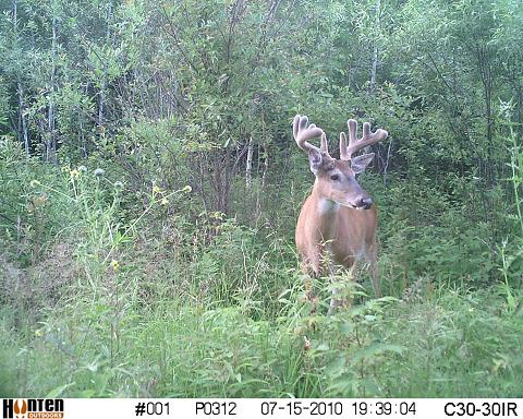 I got a few photos of this guy this spring & summer, this one was July 15th, I haven't checked the camera since. I'd like to post more photos if he comes back through, I think he's got pretty good potential.