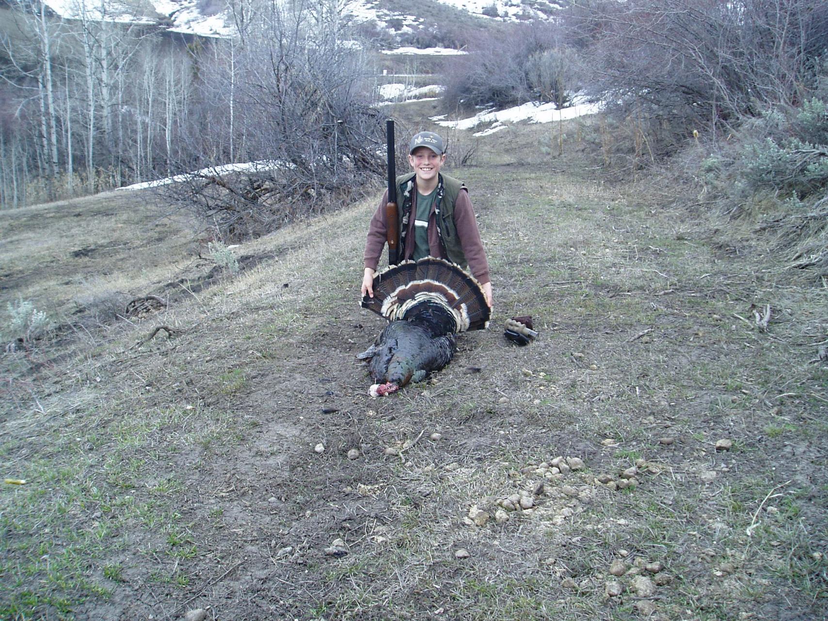 Well the day started off cold and we can not say he did not have a chance early on but he missed the shot and the Birds dissappeared for most of the rest of the day but that night he got a second chance and connected this beauty. Yes that is a 20 gauge sidebyside, and no he was not using shells that cost $2.00 each. Just some good old home loads of #5's pushed by bluedot.