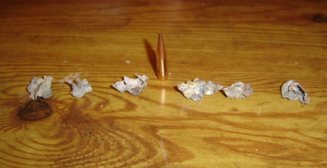 Now the big question, will they open up on game??? I built the rifle for long range coyote shooting and have taken 1 coyote at 350 yrds. with the 80 gn. Sierra`s at 2,800 fps and it did a real nice job, but will the Berger`s open. They will be spinning at 5,221.5 rev`s. per second so I think they should open, does anyone know??????????