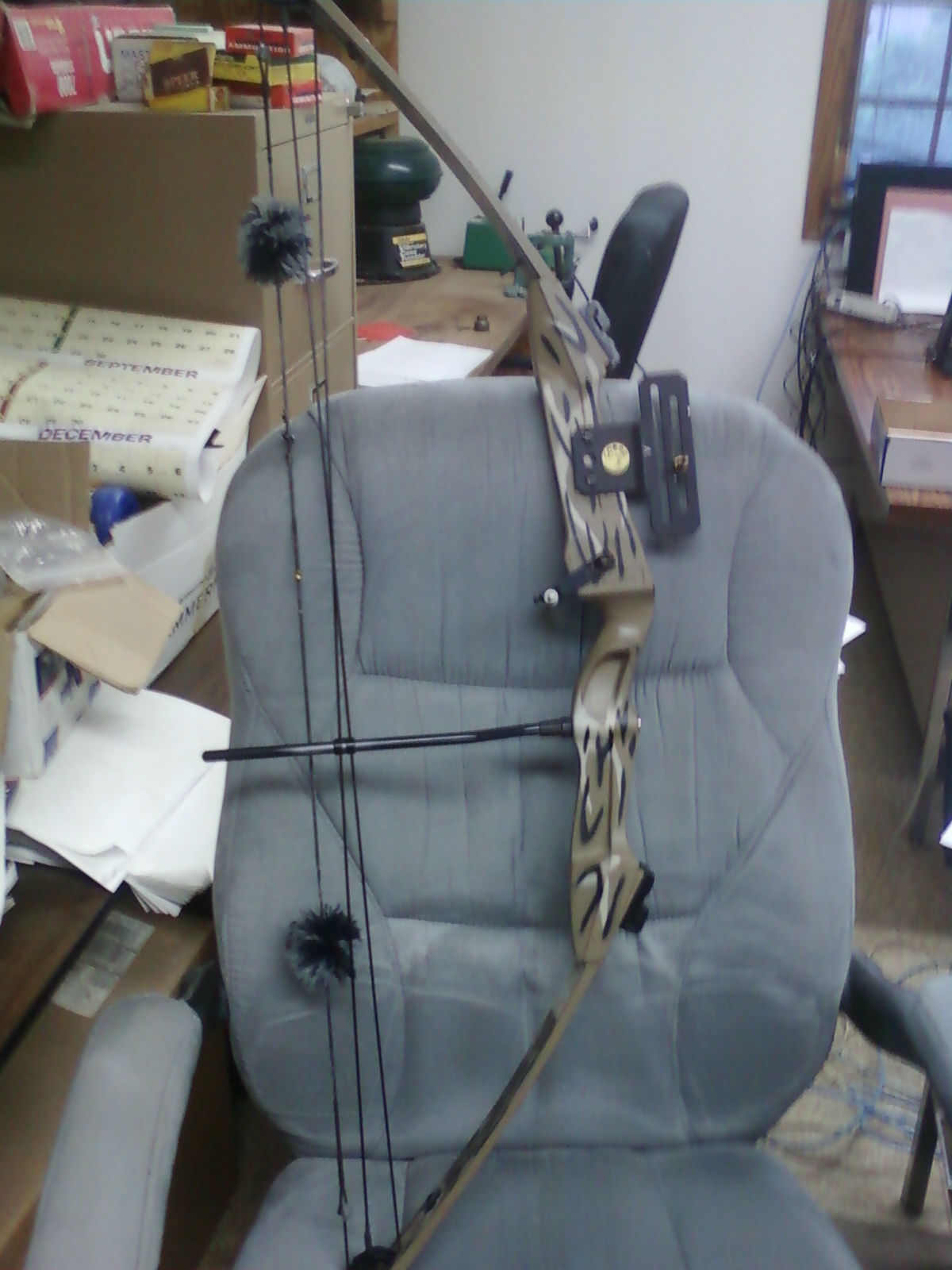 Don't know if this will help or not but here it is with a shot of one of the groups I've shot with it. Since this photo was taken of the bow I've changed the sight to a Tru-Glo and added a d-loop to the nocking point for use with a wrist release.