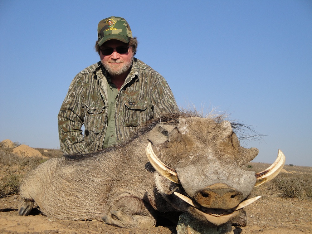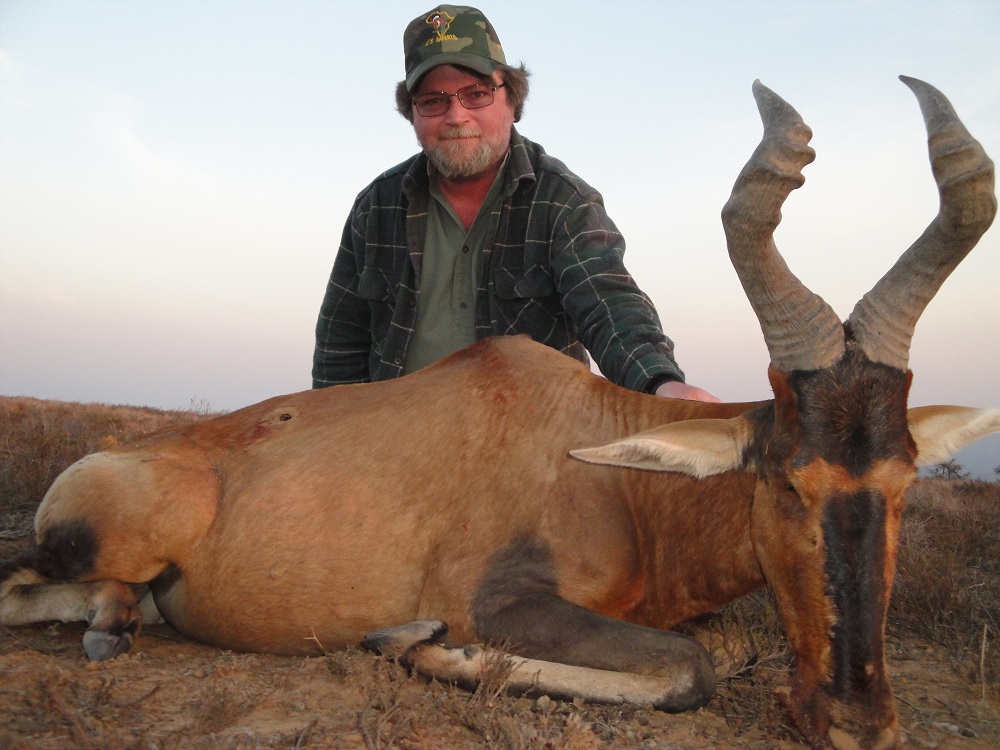 He used a .300 Weatherby magnum with 180 TBBC's. 10 hunting days, 11 nights with 8 trophy fees runs under $5,500! This includes round trip pick up and drop off at the Port Elizabeth, South Africa airport, all food/drinks, daily laundry, ground transportation during hunt, field prep of trophies, delivery to taxidermist or dip/pack facility, personal PH (1x1), tracker/skinners and exclusive use of the 25,000 acre private ranch to hunt on. Fair chase hunting!
