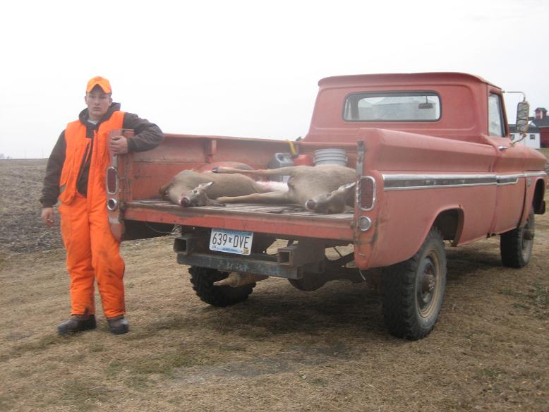 My teenage son has been working on his grandpa's '66 Chevrolet 4x4 for the last two years with the goal of taking it deer hunting. A couple weeks ago he got the carbeurator completed and it's up and running. He took it deer hunting and made a couple nice shots with his grandpa's old 16 guage and filled our tags on Saturday. We loaded them up and hauled them home to butcher. It was a big day for him. Me too.