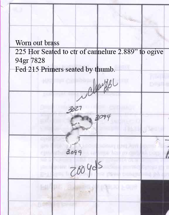 Some mighty nice shooting there Roy! I realy liked that 225gr Hornady target I get similar results with 92grs of 7828 but just a little bit faster but not enough to make a difference. I hope to be able to shoot some more before I go back to work but the wind hear in North Dakota won't quite blowing it's at 40mph.