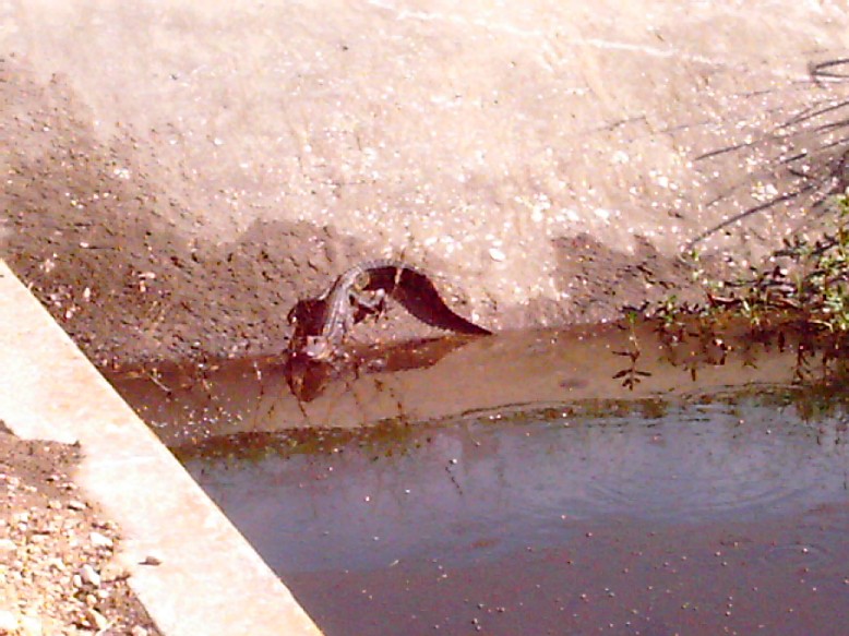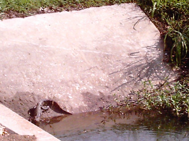 I tried to sneak up on this little one in Port Arthur, TX... but he slipped back into the water and I never got the chance to go back and try to find him/her again. I was really going to try and catch it and have gator tail one night for dinner