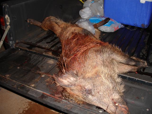 One of my guns has a Weaver Grand Slam 3-10X: Another has a 4X Burris and the third has a Redfield Widefield 4X. I have always been partial to fixed power scopes and have 9 of them on centerfire rifles. This sow was killed in late May at a distance of 227 yards and running. The gun is my CVA Mag Hunter and the scope is that Redfield Widefield 4X.
