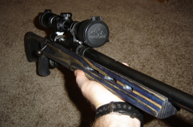 The final load with my 1/12 twist is 53 gr Barnes TSX shooting 28.5 gr of BL-C(2). I'm planting 3/8" groups with this load. The 60 grain partitions were givin me around 3/4" - 1/2" groups no matter what I tried, Plus the point of impact is almost the same with the Barnes (within 1/2") as the current 55 gr balistic tips. I have him shooting those for practice, as they aren't as expensive to load. $32 for 50 Barnes Tripple Shocks! Switched out tubes to a 3x9 Bushnell with a nice little reticle that I believe is helping him out quite a bit.