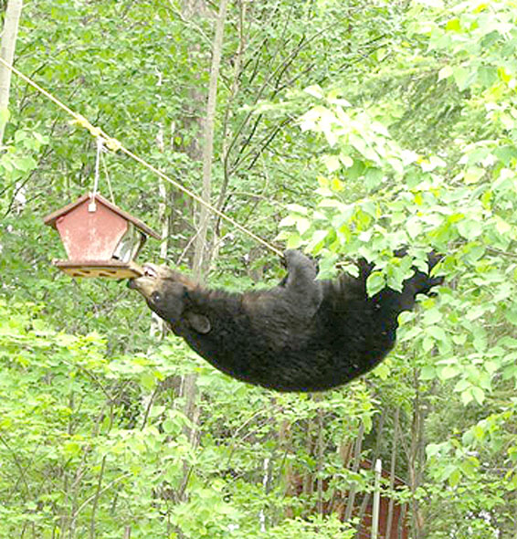 Its amazing what a bear will do to get at a birdfeeder.