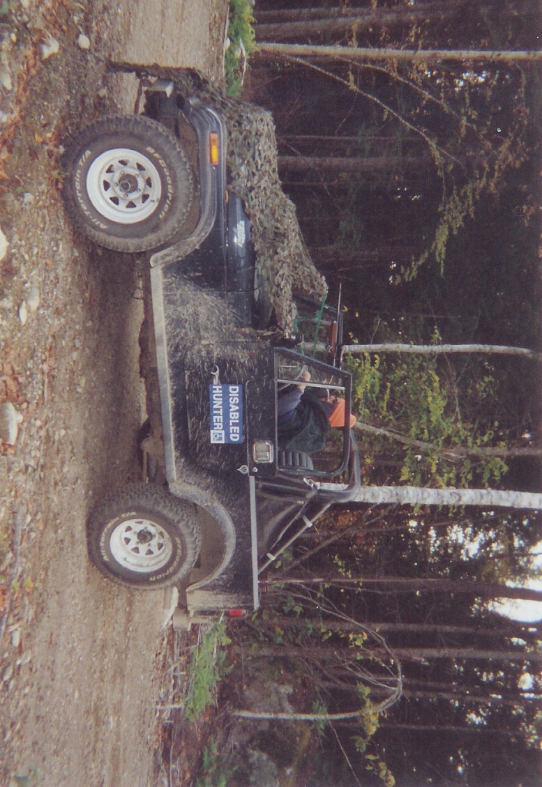 I thought I'd share these pics for any other disabled hunters out there. I am a C4 quadripleqic. I broke my neck in a diving accident in 2001. I dont have any use of my hands and very limited use of my arms. I bought a device witch has allowed me to continue to hunt (www.sr77.com). Since than I have mounted it a few differant ways. This 1986 CJ7 however is the coolest. I also had a patient lift mounted to the roll cage making it really easy to pick my fat butt up into it. This is proof that you can still get out there hunting even after suffering a serious spinal cord injury! Just got to put your mind to it and find a way. This is fantastic!