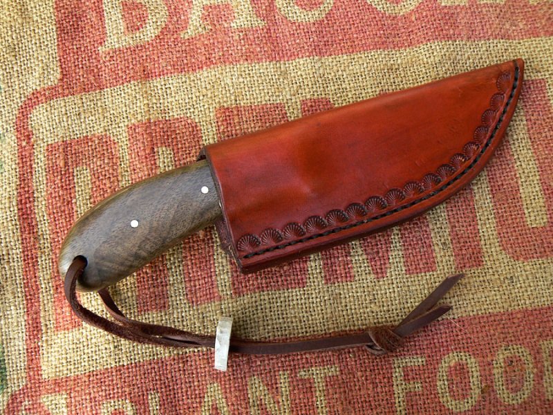 It has been a while since my last visit and I have picked up a few knives (and guns) during that time frame. Her is a skinner that I picked up that will/has turned out to be my carry knife of choice for this hunting season. It is a no nonsense skinner that is larger than it looks and fits the hand perfectly! The maker who's name I will post later due to the fact I am having a senior moment has an edge on this knife that will scare you just touching it!!! The last knife I had that had this type of edge was a Scagel and I am still kicking myself for letting that go.........LONG STORY!!! Hope you enjoy the pic's I will post the makers name later. Take care and God bless...cordell |