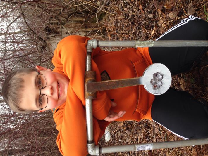 I wanted to get my boy some trigger time behind the new barrel, plus I had a couple seating depths I wanted to check. In order to make it fun I built him a 2.5" swinger and set him up at 300 yards. Here's his first 20 shots behind the wheel. He put so many bullets inside each other he shot through my 1/2" steel swinger twice.