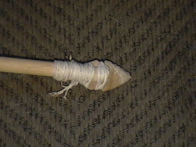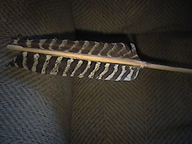After you have around 100 (most 7-8 primary wing feathers per wing) I use just left wing, you can ship them to Truflight and they will split and sand for a modest fee. Wild Turkey feathers are more stiff, and will make more noise if brush against clothing, than artificial feathers, or bleached tame turkeys, but danged, they do fly great. Also killed a buck this year with a stone point a friend knapped for me, anlers wasn't much, but a big deer.. But I was more pleased with this stone point kill than if had been a 12 point with regular broadhead. |