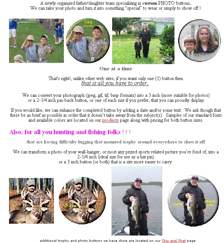 Huntchat has a new Sponsor who will take Any photo and place it on a 2 1/4" or 3" button with the option of adding text.