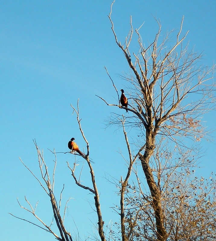 In the above picture there were seventeen roosters on the ground below the tree and I guess these two were the scouts.