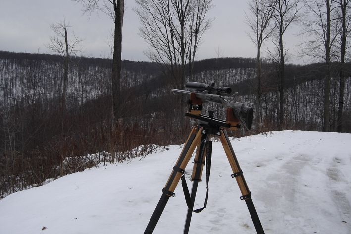 .338 Tommy opn the bench. The 1500 yard deer was on the hill just above the barrel. We can get 2500 yards to the hill above the scope.