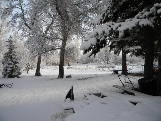 Well we had about 10 inches..then the williwaw came through and started melting..At dark we had maybe 2 inches left. Then it snowed again last night..about 4 more inches. Got Foggy and we had Hoar frost on every thng..till about noon. Sun came out ..nd almost all the snow is gone..for now. Things are wet