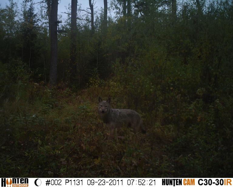 Here's a trail cam photo of the area I have in mind, one of those trees right behind that little timberwolf. (that's another thread - the Feds are delisting them in MN and the state will be taking over management, by the time this fellow grows up I might be able to get a tag)