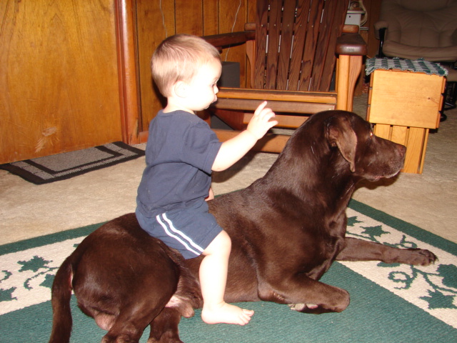 Nick and Eli are just precious. We had a black lab when I was a kid and we used to ride her like that too.