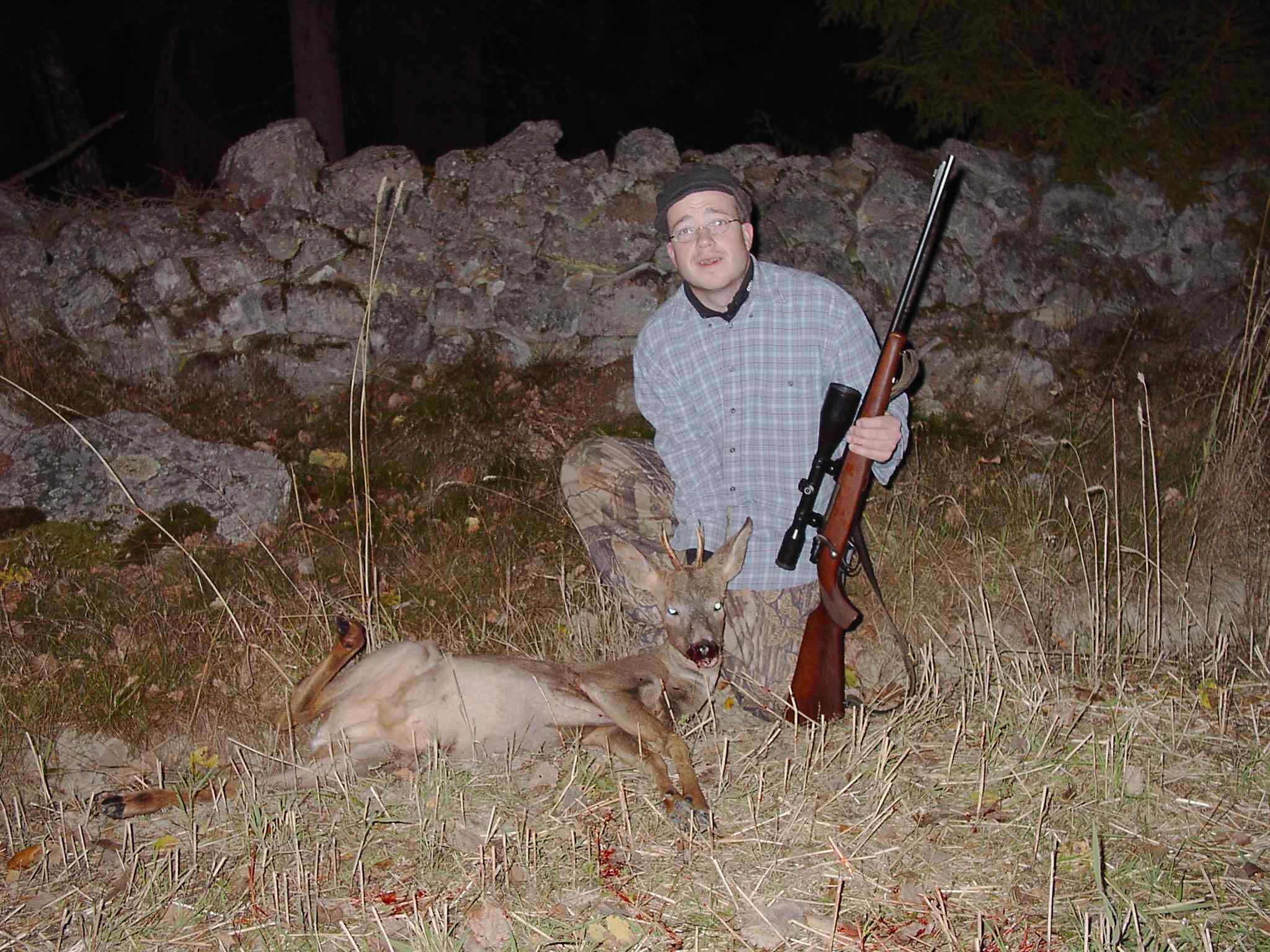 Just wanted to share this one with you. My first ever succsess in Sweden (last oktober). I´m from Iceland but my father lives in Sweden and I went there hunting with him. Took this little fellow at 200 yards from my blinde (tower). It was my last day hunting and I was only allowed to kill bucks. It was the only buck I saw all the time so it was my only chance. Had to take my rifle down just to breath before the shot becouse I was shaking like a sissy. Greatings from Iceland, Tarfur |