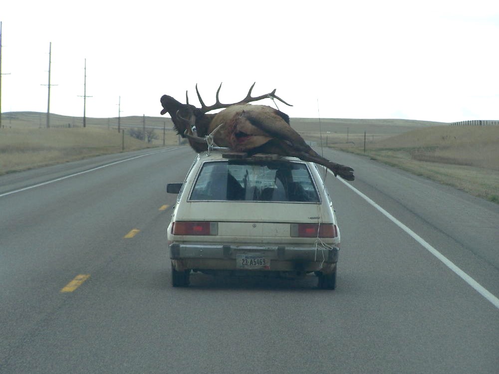 My first hunting car (Well first car) was a 1965 chevy impalla 4 door and the elk might have fit in the trunk.